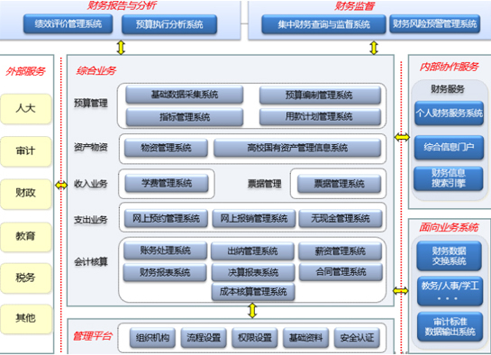 主要包含如下主要內(nèi)容:(1)二級(jí)單位財(cái)務(wù)集中監(jiān)管;(2)制定科學(xué)嚴(yán)謹(jǐn)?shù)膶徍肆鞒?;?)強(qiáng)化預(yù)算管理職能,提高預(yù)算管理水平;(4)建立健全經(jīng)濟(jì)合同管理;(5)加強(qiáng)學(xué)費(fèi)管理,解決學(xué)生欠費(fèi)問(wèn)題;(6)加強(qiáng)學(xué)校國(guó)有資產(chǎn)管理;(7)加強(qiáng)校內(nèi)人員工資、薪酬管理;(8)提升財(cái)務(wù)服務(wù)能力;(9)加強(qiáng)成本核算和預(yù)算績(jī)效管理。(10)國(guó)庫(kù)集中支付、審計(jì)接口